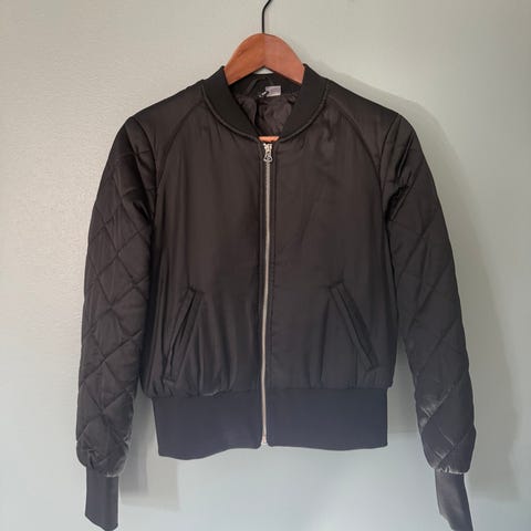Hyväkuntoinen satiininen bomber-takki.