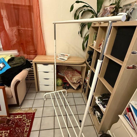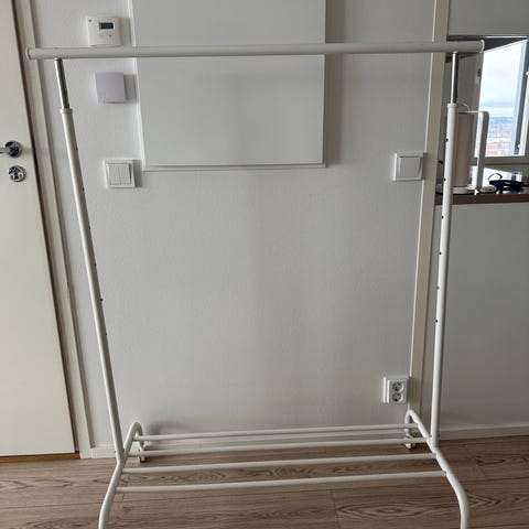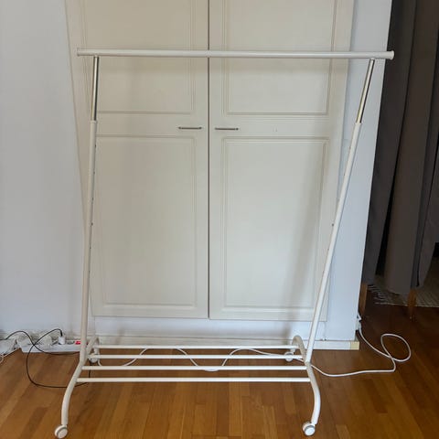 Annetaan valkoinen Ikea Rigga vaateteline.