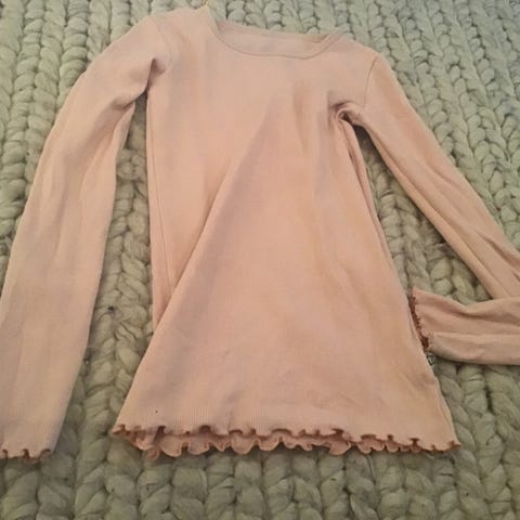 Pompdelux ribbipaita, koko 134-140. Hyvässä kunnossa. Helman käänteen ommel on muutamasta kohdasta katkennut, mutta ei ole lähtenyt isommin purkautumaan eikä näy juurikaan päällepäin. Ihan ina saattaa olla haitua pinnassa. Leveämmät raidat ovat tummansinisiä.