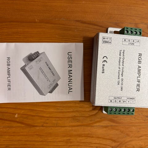 RGB-vahvistinyksikkö. Suuremman kokonaisuuden ohjauksessa voi yhden säätimen tai ohjaimen teho loppua kesken.