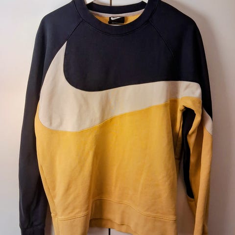 Nike collegepaita miehille. Koko M. Väri musta. Materiaali akryyliä. Perusmallinen, pitkähihainen paita, jossa pyöreä pääntie ja pieni Nike-logo edessä rinnassa.