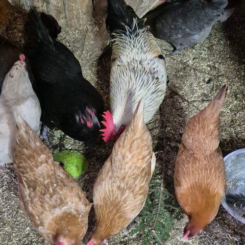 Kaksi 8/25 kuoriutunutta, joulukuussa muninnan aloittanutta kääpiökanasekoitusta.