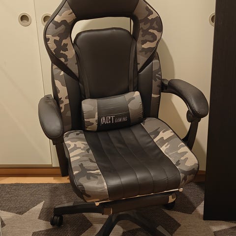 Myydään hyvässä kunnossa oleva säädettävä pelituoli, joka sopii hyvin juniorille. Säädöt (korkeuden ja selkänojan keinuuminen) toimivat niin kuin pitää. Renkaat ehjät. Vain nouto.