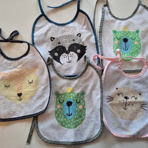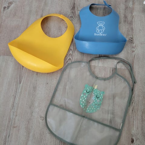 Sleeved baby bib, only tried/used very little. Almost like new condition. Clean and well kept.