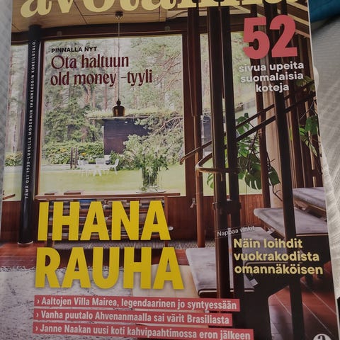 Siistikuntoisia Deko -lehtiä vuosilta 2021 ja 2022, lisäksi v.2025 Deko / Asuntomessuluettelo ( tässä kansilehti hieman taittunut). Avotakka -lehdet vuodelta 2019. Vain nouto.