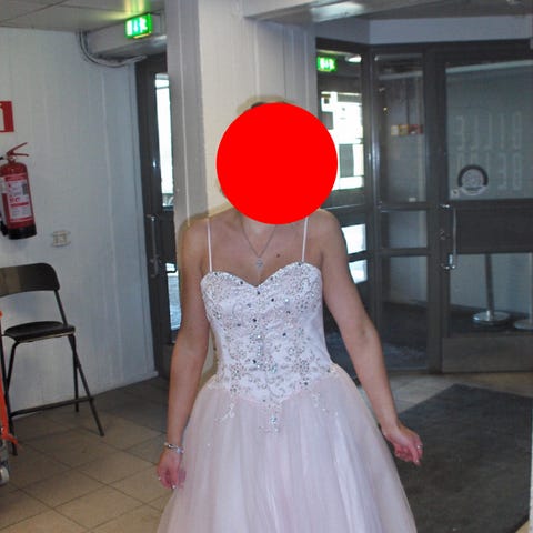 Wanhojen mekko on kokoa S ja lyhennetty n. 165 pituiselle (lenkkarit jalassa).