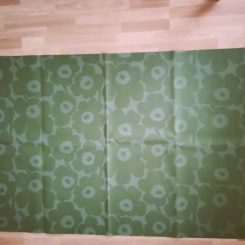 Materiaali puuvillaa.Kuosin värit: vihreä pohja, punaisen ja pinkin sävyt, vaaleat korosterenkaat.