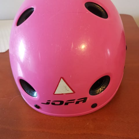 Jofa lasten kypärä koossa M. Koko sopii noin 51,3–55,5 cm päänympärykselle. Väri on pinkki ja kypärässä on useita ilmanvaihtoaukkoja. Sisäpuolella on pehmusteet ja säätöremmit istuvuuden parantamiseksi. Soveltuu nuorille lapsille esimerkiksi pyöräilyyn tai muuhun vastaavaan käyttöön, jossa tarvitaan pään suojaa. Ehjä.