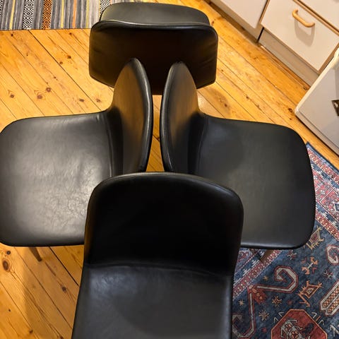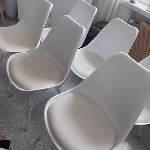 Ruokapöydän tuoleja 1-5 kpl, värinä harmaa. On ihan hyvässä kunnossa, mutta käytön jälkeä näkyy jonkun verran. 1 kpl 15€, 5 kpl 70€.