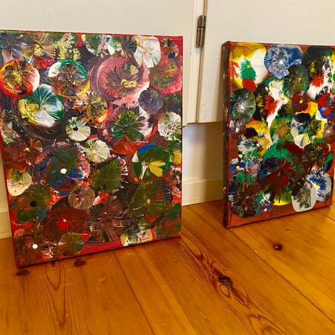 Abstraktit taulut 2 kpl mustilla kehyksillä