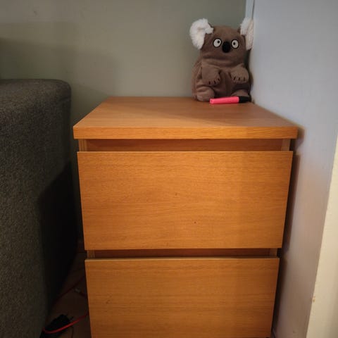 Laatikoiden mekanismit liukuvat hyvin ja lipasto on hyväkuntoinen.