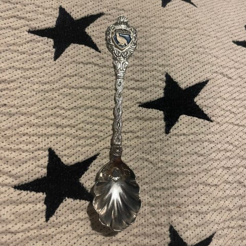 Pieni matkamuisto lusikka Budabest tekstillä sekä ruusulla.