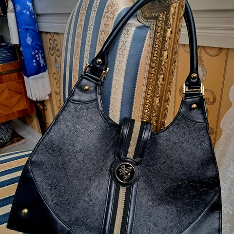 Naisten musta käsilaukku.