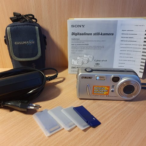 Sony Cyber-shot kompaktikamera musta. Taskukokoinen digikamera, jossa sisäänrakennettu zoom-objektiivi ja takana näyttö sekä perinteiset painikkeet ja ohjausrulla. Mukana akku, laturi ja suojakotelo. Laturissa ei vietajohtoa mutta siihen sopii yleinen litteä johto. Siisti kunto käytännössä ei mitään käytönjälkiä. Lähetys onnistuu ostajan kuluilla.