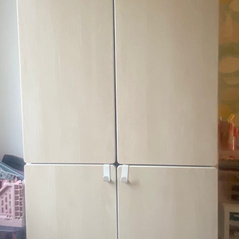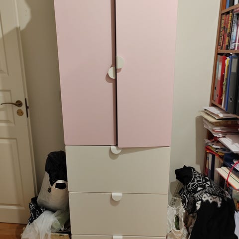 IKEA småstad/platsa kaapit 3 kpl, joissa messinkiset vetimet. Yhdessä sisällä lankakorit, kahdessa vaatetanko. Meillä olleet käytössä lastenhuoneessa sekä portaiden alla säilytyksessä. Käytön jälkiä ja kulumia ovissa ja reunoissa, yhden kaapin päälilevy on irti (voidaan kiinnittää uudestaan). 20€ / kpl