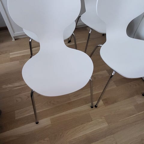 2kpl valkoisia Klarup, Jysk tuoleja. Myydään myös erikseen, 25€ kpl. Metsola, Vantaa.