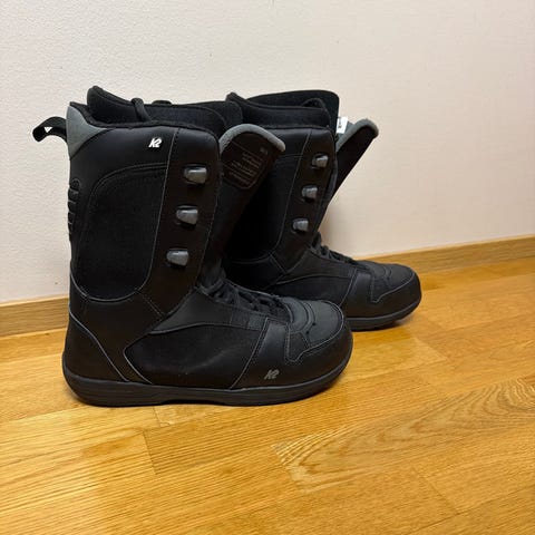 Muutaman kerran käytetyt K2 black lumilautakengät. Olivat liian pienet. Koko 43,5 (9 UK, 10 US), mutta vastaa todellisuudessa 42 kokoa.