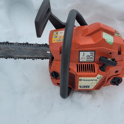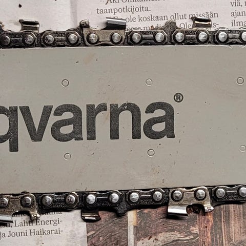 Vähän aikaa sitten vaihdettu sylinterisarja ja sen jälkeen muutama puu kaadettu ja pölliä sahattu. Tuntuu että vielä se ei ihan täysillä käy eli joku sahassa vielä on. Ei aika eikä into enää riitä tähän sahaan. Ilman laippaa ja ketjua, tai 20€:n lisähinnasta 20" laippa ja ketju mukaan.