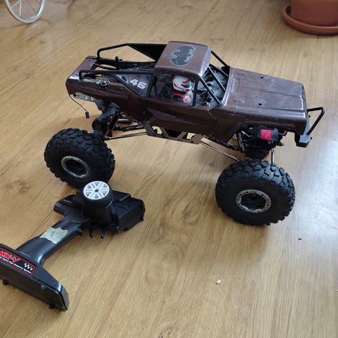 LCG Crawleri. Hiilikuitu runko, Alumiini "Capra" akselit, HW Fusion, 35kg servo. Välitetyllä vaihteistolla. Beadlock vanteilla ja uusilla Renkailla.