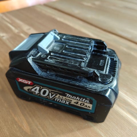 Kuvassa näkyvät kolme Makitan 18V LXT-sarjan akkua yhteishintaan 50e. Kaikki iäkkäitä ja ulkoisesti jälkiä, mutta toimivia. Yksi 3Ah ja kaksi 4Ah.