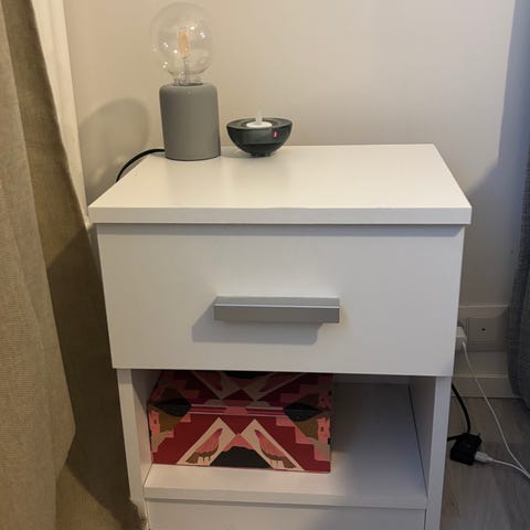 Muistuttaa ikean malm yöpöytää, mutta muistaakseni ostettu jyskistä
