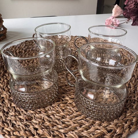 Iittala Tsaikka violetit kuumajuomalasit metallipidikkeillä. Myydään mieluiten settinä mutta saa myös tarjota erikseeen.