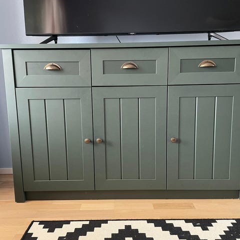 Mitat: leveys noin 120 cm, korkeus noin 80 cm, syvyys noin 40 cm. Senkki soveltuu esimerkiksi olohuoneeseen, ruokailutilaan tai eteiseen astioiden, tekstiilien tai muiden pientavaroiden säilytykseen.