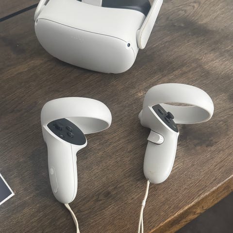 Seissyt viimeisen vuoden kaapin perällä. Lasit toimivat niinkuin pitääkin mutta vasen ohjain ei jostain syystä halua yhdistää. Ohjaimet käytetty 2 kertaa auki ja putsattu tattien alta olevat roskat. Näissä tulee helposti stick driftiä. Laturia ei ole. Toimivuus testattu 19.2.2026