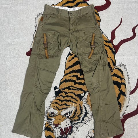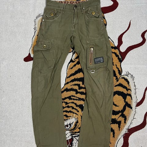 Vintage GAP miesten cargo housut, koko M - W32 (vyötärö 82 cm). Väri ruskea ja materiaali puuvilla. Malli on monitaskuinen, sivuilla ja takana useita läpällisiä taskuja. Lahkeissa on nepparikiinnitys ja vyötäröllä vyölenkit. Soveltuvat arkikäyttöön ja vapaa-aikaan.