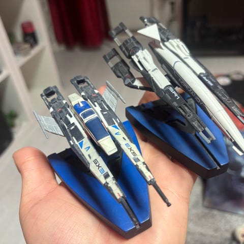 Mass Effect Normandy SR-2 ja SX3 -avaruusalusfiguurit sininen/valkoinen
