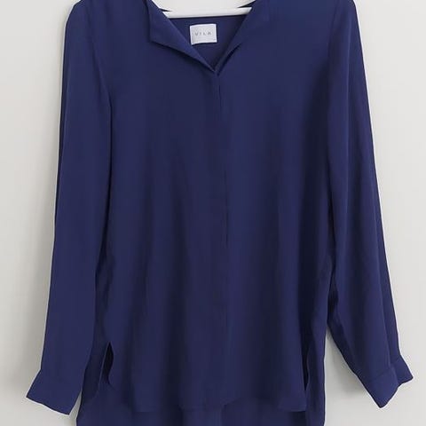 Vila pitkänmallinen paitapusero (koko 34). Väri tummansininen. Voin postittaa.