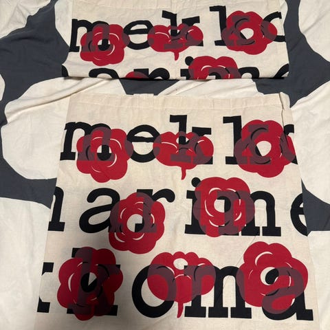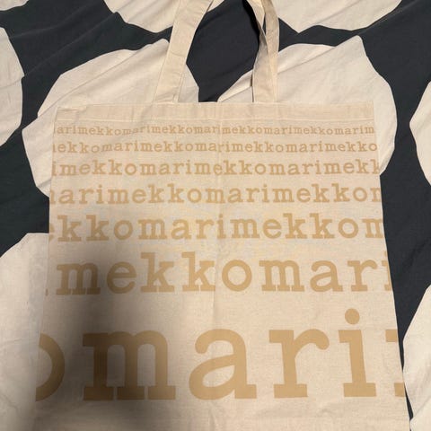 Marimekko kangaskassi unisex-käyttöön. Kassi on valmistettu kankaasta ja siinä on Marimekon iso logopainatus sekä violetit kukkakuviot luonnonvaalealla pohjalla. Kaksi kantokahvaa mahdollistavat kantamisen olalla tai kädessä. Soveltuu arjen ostoksille, vapaa-aikaan ja yleiskäyttöiseksi kassiksi.