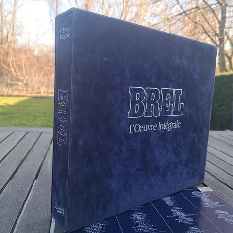 Harvinainen 14 LP:n box Jacques Brel – L'Œuvre IntégraleVinyl in erittäin hyvässä kunnossa, vaikuttaa lähes käyttämättömältä! (Near Mint)Boxilla on ulkopuolelta kevyt kuluma..Boxin käyttö kannattaa suorittaa pystyasennossa LP:iden ottamiseksi. (Ei kirjan tavoin selailtavaksi, ellei ole varovainen) näin vältytään liialliselta rasitukselta.Sillä hetkellä box on yli 44 vuotta vanha.Jacques Brel – L'Œuvre IntégraleLabel: Barclay – 200.300Format: Box Set, Compilation10 x Vinyl, LP, Compilation4 x Vinyl, LP, AlbumCountry: FranceReleased: 1982Grand JacquesA1 La HaineA2 Grand JacquesA3 Il Pleut "Les Carreaux"A4 Le Diable "Ça Va"A5 Il Nous Faut RegarderA6 C'Est Comme ÇaB1 Il Peut PleuvoirB2 Le Fou Du RoiB3 Sur La PlaceB4 S'Il Te FautB5 La BastilleB6 Priere PaienneQuand On N'A Que L'AmourA1 L'Air De La BêtiseA2 Qu'Avons-Nous Fait, Bonnes Gens?A3 PardonsA4 Saint-PierreA5 Les Pieds Dans Le RuisseauB1 Quand On N'A Que L'AmourB2 J'En AppelleB3 La Bourrée Du CélibataireB4 HeureuxB5 Les BlésB6 Demain L'On Se MarieAu PrintempsA1 Au PrintempsA2 Je Ne Sais PasA3 Dors Ma Mie, BonsoirA4 Dites, Si C'Était Vrai (Poème)A5 Le ColonelA6 L'Homme Dans La CitéB1 La Lumière JailliraB2 VoiciB3 Litanies Pour Un RetourB4 SeulB5 La Dame PatronesseB6 La MortLa Valse À Mille TempsA1 La Valse À Mille TempsA2 Je T'AimeA3 Ne Me Quitte PasA4 IsabelleA5 La TendresseA6 La ColombeB1 Les FlamandesB2 L'IvrogneB3 MariekeB4 Le MoribondB5 Le Prochain AmourB6 Vivre DeboutLes SingesA1 Les Prénoms De ParisA2 ClaraA3 On N'Oublie RienA4 Les SingesA5 VoirA6 L'AventureB1 Il Y AB2 La FoireB3 Les Amants De CœurB4 Il Neige Sur LiegeLe Plat PaysA1 Le Plat PaysA2 ZangraA3 Le Caporal Casse-PomponA4 La StatueA5 RosaA6 Les BourgeoisB1 MadeleineB2 Les Paumés Du Petit MatinB3 BruxellesB4 Chanson Sans ParolesB5 Quand Maman ReviendraLes VieuxA1 Les VieuxA2 Les FenêtresA3 Les TorosA4 La ParloteA5 Les Filles Et Les ChiensA6 La FanetteB1 Les BonbonsB2 J'AimaisB3 Les BergersB4 Le Dernier RepasB5 Une ÎleB6 Les BigotesJef... Au SuivantA1 JefA2 Tango FunèbreA3 Les DésespérésA4 L'Âge IdiotA5 MathildeB1 Au SuivantB2 TitineB3 Grand-MèreB4 FernandB5 JackyCes Gens-LàA1 Ces Gens-LàA2 La, La, LaA3 Le ChevalA4 Mon EnfanceA5 Les Bonbons 67B1 La Chanson Des Vieux AmantsB2 A JeunB3 Fils De...B4 Les Coeurs TendresB5 Mon Père DisaitB6 Le GazJ'ArriveA1 L'OstendaiseA2 Je Suis Un Soir D'ÉtéA3 Un EnfantA4 Comment Tuer L'Amant De Sa Femme Quand On A Été Élevé Comme Moi Dans La TraditionA5 VesoulB1 J'ArriveB2 La BièreB3 L'ÉclusierB4 Regarde Bien, PetitB5 L'EnfanceB6 La QueteLes MarquisesA1 JaurèsA2 La Ville S'EndormaitA3 VieillirA4 Le Bon DieuA5 Les F...A6 OrlyB1 Les Remarts De VarsovieB2 Voir Un Ami PleurerB3 Knokke-Le_Zoute TangoB4 JojoB5 Le LionB6 Les MarquiesesBrel En Public A L'Olympia 1961A1 Les Prénoms De ParisA2 Les BourgeoisA3 Les Paumés Du Petit MatinA4 Les FlamandesA5 La StatueA6 ZangraA7 MariekeA8 Les BichesB1 MadeleineB2 Les SingesB3 L'IvrogneB4 La Valse À Mille TempsB5 Ne Me Quitte PasB6 Le MoribondB7 Quand On N'A Que L'AmourBrel En Public A L'Olympia 1964A1 Amst