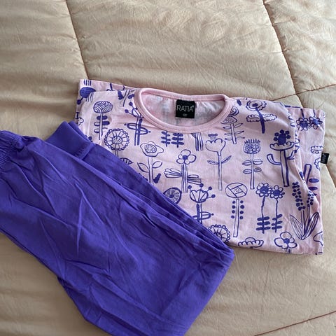 Tytölle hyväkuntoinen Ratia raitapyjama / yöpuku, koko 130 cm.
