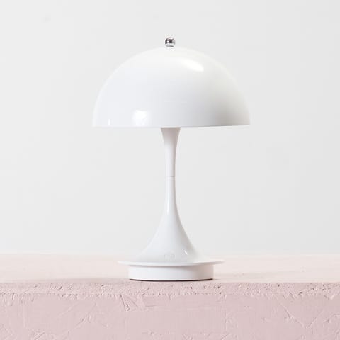 Tanskalaisen Verner Panthonin vuonna 1971 muotoilema kannettava Panthella-pöytävalaisin. Varjostimen muoto ohjaa valon pehmeästi huoneeseen. Panthella-pöytävalaisin on klassikko joka sopii moneen eri tilaan. Ladattava akku. Väri: Opal White.