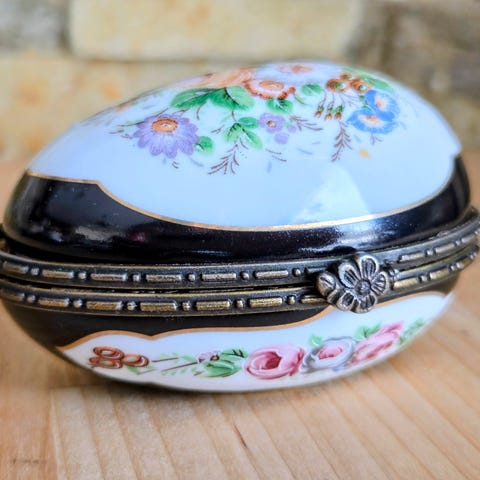 Elegantti pyöreä vintage Limoges -korurasia, 22 karaatin kultaa. Ranskalainen vintage Limoges -korurasia.