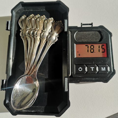 Hopealusikat 813. Paino 53-54grammaa. Kaiverrettu