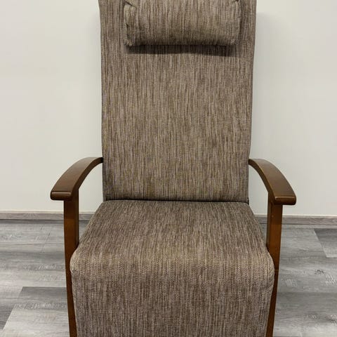 Hyväkuntoinen, siisti nojatuoli. Luonnonvalkoinen päällinen vakosamettia. Istuin- ja selkänojatyynyt vetoketjuilla ja pestävissä. Leveys n 79 cm.