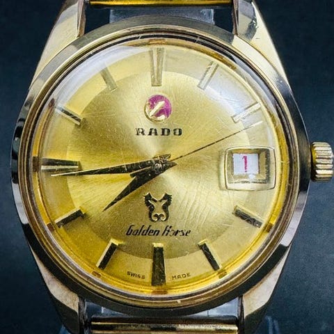 KuvausTapaus: 35 mm (läpimitta ilman kruunua) x 43 mm (lugs to lug) Kellonviisari: Kultainen kellotaulu ja kultaiset osoittimet ja merkit Kristalli: Akrylia; joitakin naarmuja Päivä/date: Pikavalinta toimii Tauko: Jälkimyynti (käytetty) Lug-leveys: 18 mm Pituus kellon päästä mukaan: 18 cm Huoltohistoria: TuntematonVakuutettu toimitus seuraavilla kanavilla: Paikallinen toimitus: Paikallinen rekisteröity postilähetys Kansainvälinen toimitus: DHL ExpressTÄRKEITÄ HUOMIOITA!! OLE HUOMIOITAVISSA ENNEN HUIKKAUSTA!!1. Kellonmyynti on myyty sellaisenaan. Ellei toisin mainita, takuuta ei myönnetä eikä aikakäyttövarmuuteen, vedenkestävyyteen jne. liittyviä vaateita oteta huomioon tai hyväksytä.2. Ostaja vastaa mahdollisista lisämyyntiveroista ja/tai arvonlisäverosta, joita veroviranomaiset voivat periä maittain. Tarkista siis asianmukaisilta viranomaisilta, jos olet epävarma, ja tee tarjous sen mukaan. Mikäli ostaja ei onnistu vastaanottamaan verojen maksamattomien vuoksi, ostaja on silti vastuussa kaikista toimituskuluista, tulliselvityskuluista ja muista hallinnollisista kustannuksista.3. Mikäli tilauksen peruutus tapahtuu ostajan harkinnan mukaan toimituksen jälkeen, ostaja vastaa kaikista palautuslähetyksen eristä, hallinnollisista ja tullimaksuista, jotka maksetaan kellon takaisinlähettämiseen ja jälleenvientiin.4. Kansainvälinen kuljetus (paitsi tulliselvitys ja viimeinen maili - toimitus) kestää yleensä jopa 2 viikkoa, mutta voi kestää kauemmin maan ja paikan, pyhäpäivät, Ukrainan sodan tilanne, maailmanlaajuinen pandemia jne. mukaan.5. Huomaa myös, että meillä ei ole vaikutusvaltaa tai hallintaa siihen, miten nopeasti kunkin maan tulliviranomainen käsittelee lähetyksen saapumisen jälkeen. Tarkista siis tulliviranomaiseltasi/postipalvelulta, kun tavara saapuu maahan.
