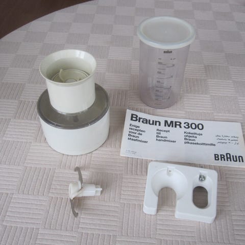 Käyttämätön vatkainosa ja erikoisvatkauskulho kermaa ja munanvalkuisia varten.