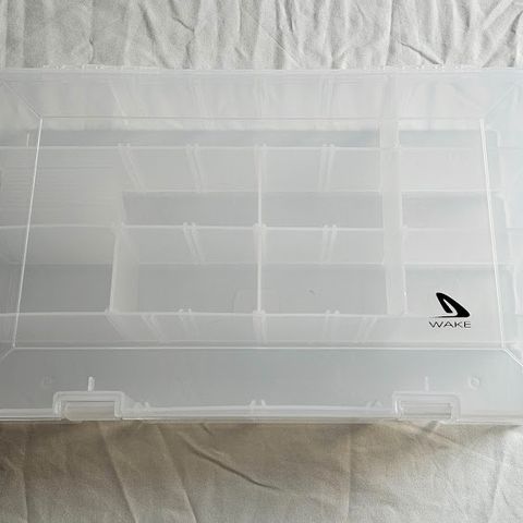 Shakespeare muovinen säilytyslaatikko, jossa erillisiä lokeroita pienten kalastusvälineiden järjestämiseen. Läpinäkyvä kansi helpottaa sisällön näkemistä ilman avaamista.