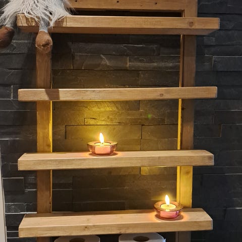 Kiva 4-tasoinenhylly kotiin pikkuesineille tai vaikka mökki veskiin paperitelineeksi :)
