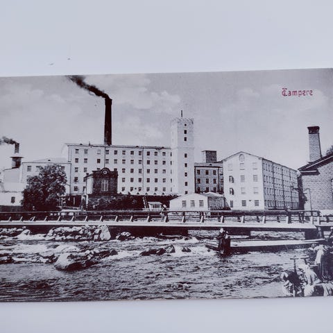 Kulkematon postikortti. Jonkin verran tahraisuutta rakennuksen yläpuolisessa vaaleassa osuudessa sekä kortin takapuolella.