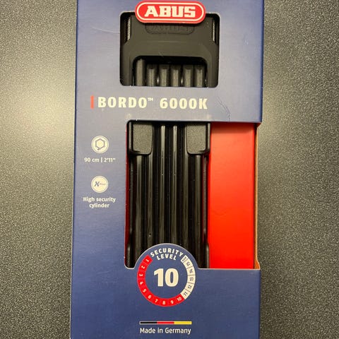 Abus Bordo 6000 on laadukas taittolukko, jossa on viisi millimetriä paksut karkaistut terästangot. Lukon pituus on 90 cm, ja se on varustettu pehmeällä pinnoitteella, joka suojaa polkupyörän runkoa naarmuilta. Mukana toimitetaan kätevä kuljetusteline ja kaksi avainta.Turvataso 10/15, 90 cm pituus, valmistettu Saksassa, sisältää kiinnitystelineen ja kaksi avainta.Tuote on alkuperäisessä avaamattomassa pakkauksessaan.Valmistaja: ABUSVäri: mustaMateriaali: karkaistu teräs, muoviMitat: Syvyys: 90 cm