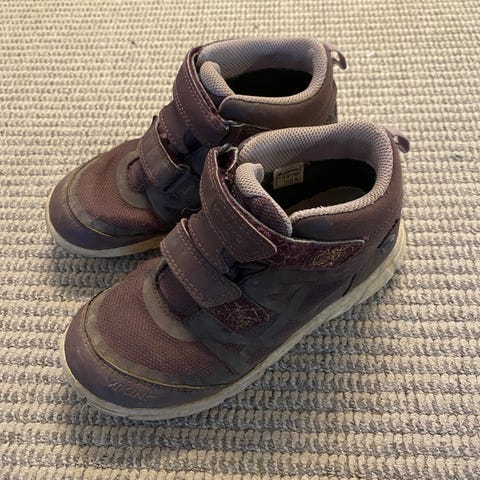 Saappaissa on korkea varsi ja karkea, pitävä kumipohja. Helpot pukea ja pitää jalat kuivina ja lämpiminä loskassa. Koko 32 ja irroitettavan pohjallisen mitta on 22 cm. Siistit ja ehjät.