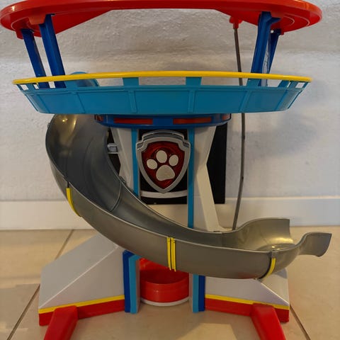 Ryhmä Hau leikkitorni liukumäellä. Muovinen leikkitorni, jossa useita tasoja ja kierremäinen liukumäki ajoneuvoille tai hahmoille. Tornissa on katselutasanne ja keskiosassa Ryhmä Hau -tunnus. Soveltuu lasten leikkeihin Ryhmä Hau -teeman kanssa yhteensopivien hahmojen ja ajoneuvojen kanssa.