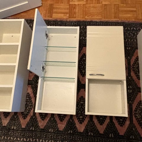 Allas, allaslaatikosto ja niihin sopiva peili tai peilikaappi sekä pyykkikaappi oikeakätisyydellä. Väri valkoinen.