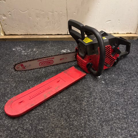 Pitkään seissyt jonsered varaston perukoilta. Lähtee käyntiin ja puu katkeaa. Onhan tuolla ikää jo. Kunnostukseen tahi fiilistelyyn.