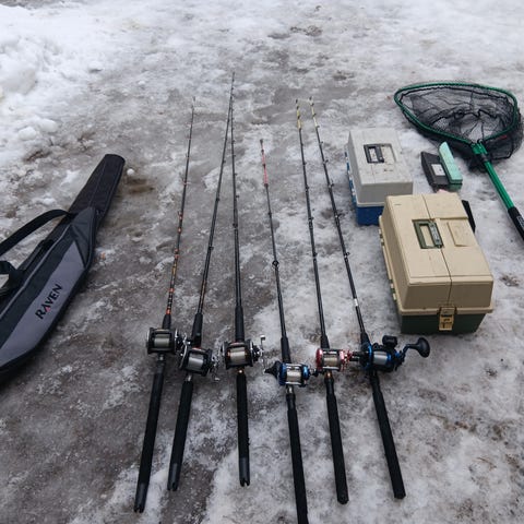Kalastussetti, johon kuuluu useita virveleitä keloineen, vieherasioita sekä erilaisia uistimia ja vieheitä. Kuvissa näkyy useita vapayhdistelmiä, joissa on hyrräkelat jokaisessa . Uistimet suurrimaksi osaksi vetouisteluun.. lisäksi kalastus pihdit ,haavi, puukko ,plaanarit.