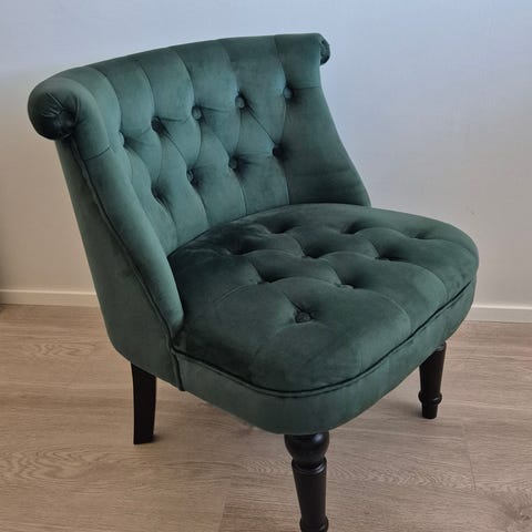 Ostettiin näitä tuoleja liikaa siihen nähden, mitä meidän ruokapöydän ympärille mahtuu hyvin. Nämä kaksi tuolia ovat olleet vierashuoneessa jemmassa ja niillä on istuttu vain muutamia kertoja. Tekstiiliosat on käsitelty likaahylkivällä tekstiilisuojasuihkeella.
